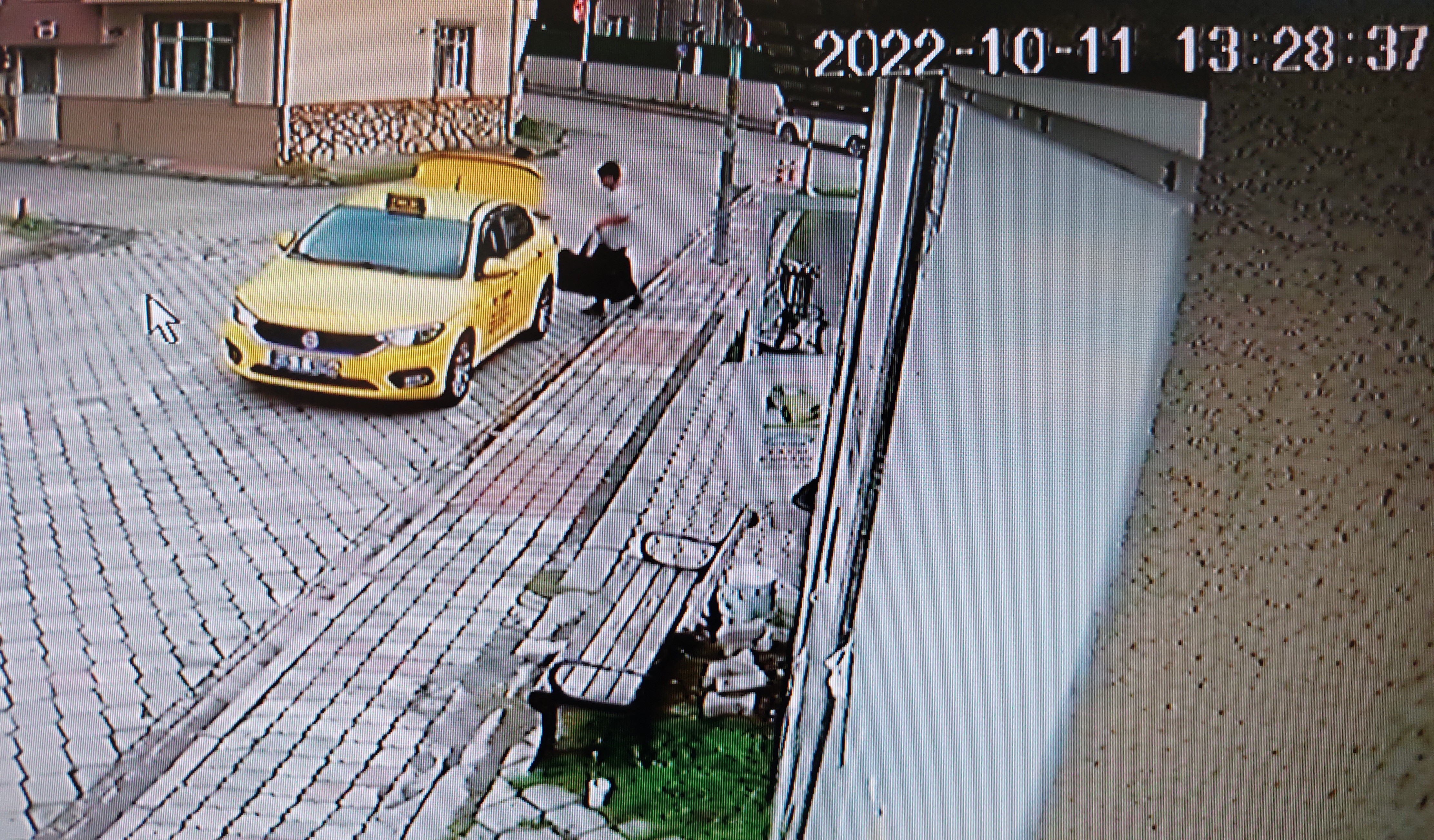 R.A.'nın içinde pompalı tüfek bulunan çantayı gasp ettiği aracın bagajına koyması ve durakta taksiye binip taksi ile duraktan ayrılma anları saniye saniye güvenlik kamerası tarafından görüntülendi.