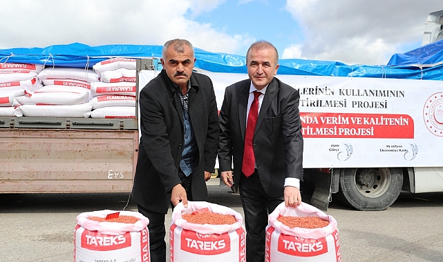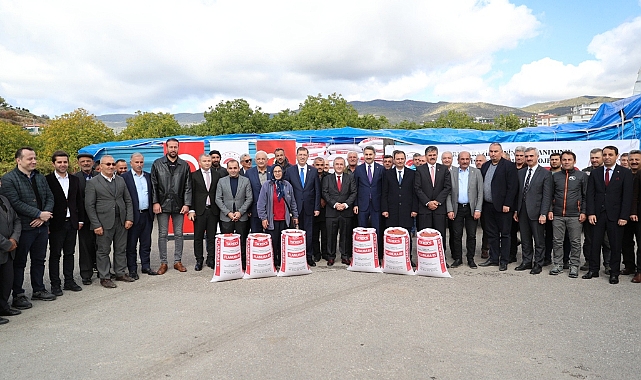 Vali Hatipoğlu, “Tokat İl Tarım ve Orman Müdürlüğü tarafından 2020-2021 ve 2022 yıllarında İl Özel İdaresi ile Tarım ve Orman Bakanlığı destekli projeler uygulanmakta, bu kapsamda “Kuru Fasulye Tarımının Geliştirilmesi Projesi” kapsamında 50 ton sertifikalı kuru fasulye tohumluğu, Buğday Tarımında Verim ve Kalitenin Yükseltilmesi Projesi” kapsamında 1933 ton buğday tohumluğu, “Ayçiçeği Üretiminin Yaygınlaştırılması Projesi” kapsamında 32 ton sertifikalı ayçiçeği tohumluğu ve “Nohut Üretiminin Yaygınlaştırılması Projesi” kapsamında 40 ton sertifikalı nohut tohumluğu bölgede bulunan 13 bin çiftçiye dağıtımı yapıldı.2022 yılında proje gerçekleşme aşamasında Bakanlığımız TAKE “Buğday Üretiminde Verim Ve Kalitenin Artırılması “ projesi kapsamında 8.000.000 TL bütçe ile 665 ton flamura -85 buğday tohumluğu temin edilmiş olup, 2500 çiftçiye dağıtımı yapılacaktır. Bu kapsamda 3 yılda yapılan projeler sonunda; 18,5 milyon TL. bütçe ile 2.100 ton sertifikalı tohum çiftçilerimizle buluşturularak, üretim sonunda Milli Ekonomimize 240.000.000,00 TL. katkı sağlanması hedeflenmektedir.”Çalışmalarda emeği geçen herkese teşekkür eden Vali Hatipoğlu, dağıtılan tohumların çiftçiye hayırlı olmasını diledi.Yapılan konuşmaların ardından Vali Hatipoğlu ve protokol mensupları tarafından çiftçilere tohumlara verildi.