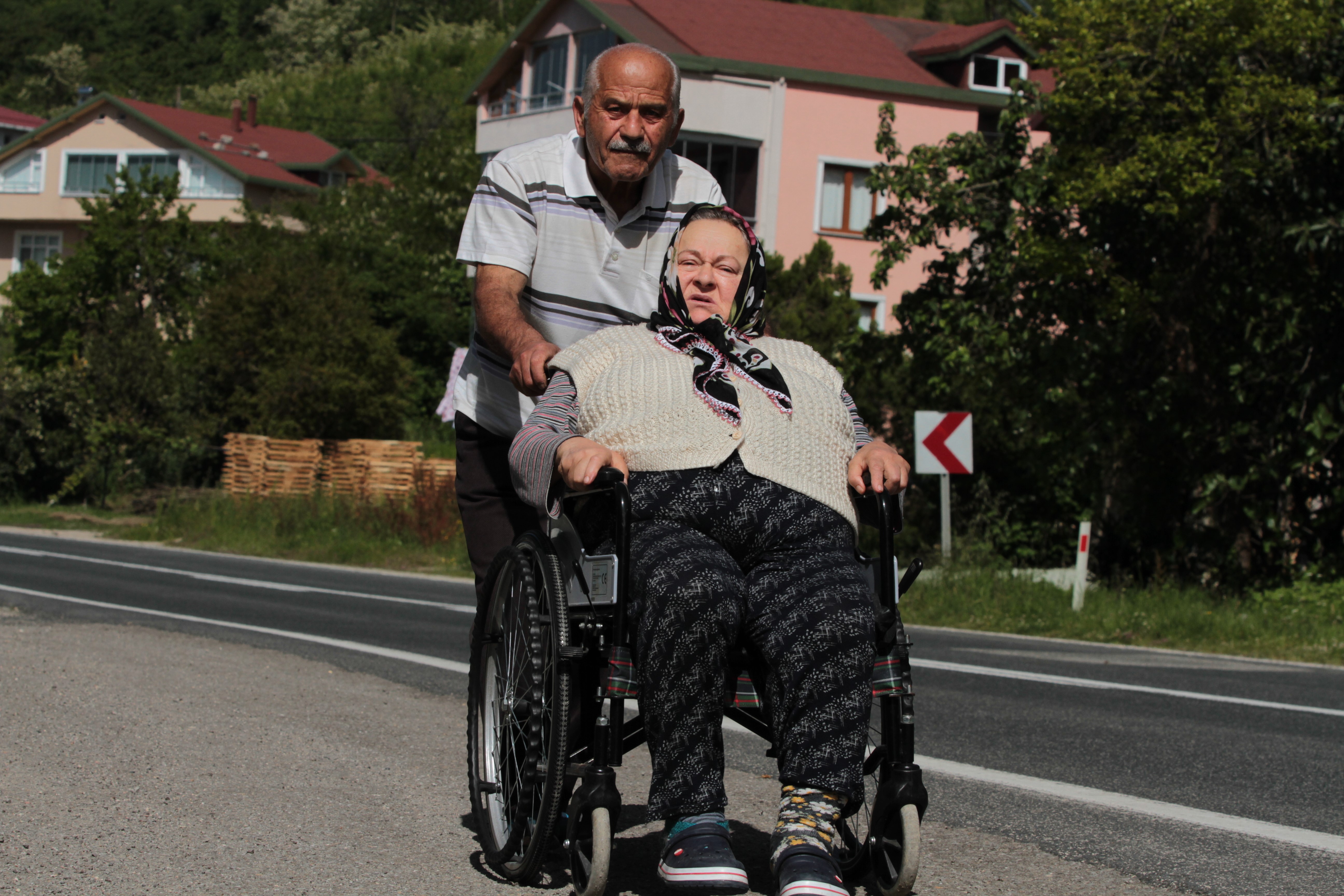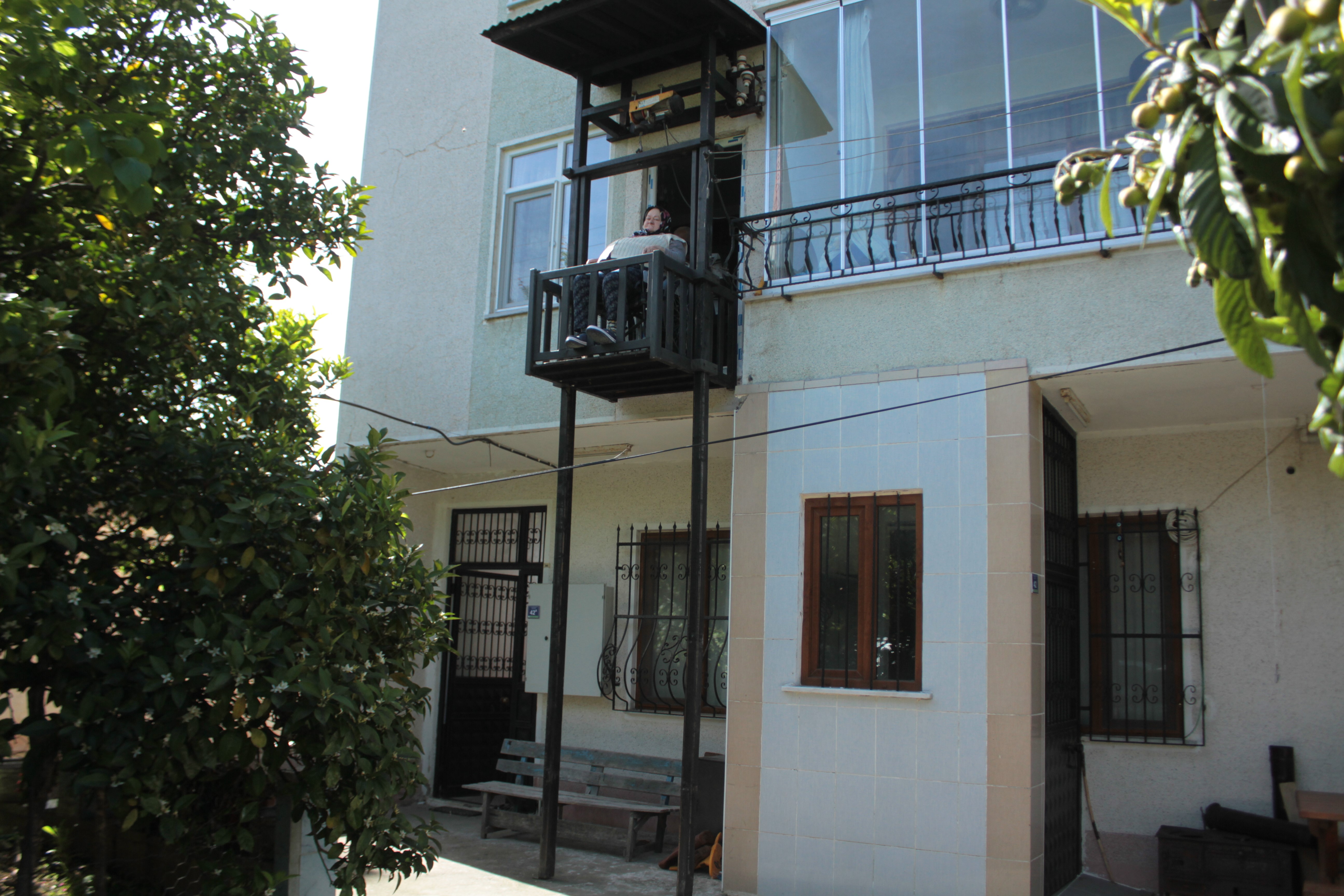 “Eşim asansör ile beni dışarıya çıkartıyor ve çay içiyoruz, geziyoruz ve güzel vakit geçiriyoruz, komşularımıza gidiyoruz. Çok severek evlendik, birbirimize ‘iyi günde, kötü günde yardımcı olacağız’ diye söz verdik. Kendisi benim için asansör yaptı. Kendisinden Allah razı olsun.”