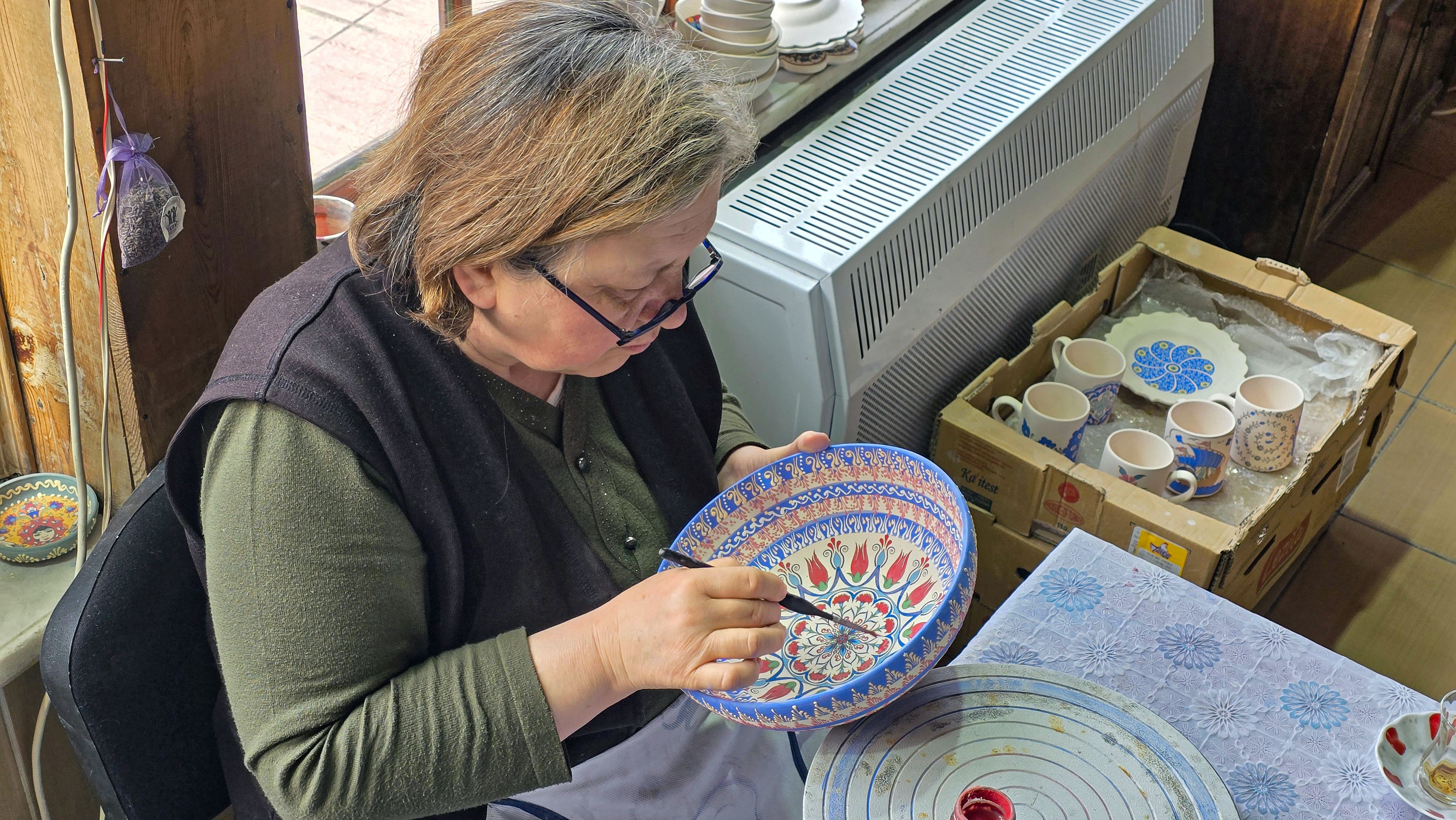 Çini sanatıyla 4 sene önce tanıştığını söyleyen Mehtap Baran ise, “Ben ahşap boyamaya gitmeyi istemiyordum. İlla tabak diye tutturdum. Açılınca Tülay ablaya iş için başvurduk. 6 ay öğrenemedim, öğrenemedim derken sıkıntılı bir sürecim de vardı. Sağ olsun Tülay abla da sabretti, 'Seninle devam edelim' dedi. Pandemi döneminde çıkışımız oldu ama sonra girdik, 4 senedir devam ediyoruz” diye konuştu.