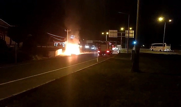 Sivas’ta bir otomobil alev alev yandı, o anlar cep telefonu kamerasına yansıdı.