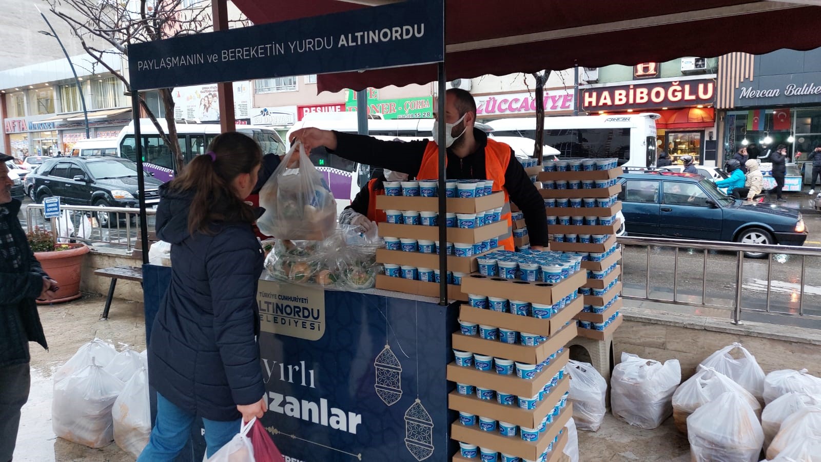 Ordu’nun Altınordu Belediyesi tarafından kurulan stantlar ile vatandaşlara iftarlık yemek ikram ediliyor.