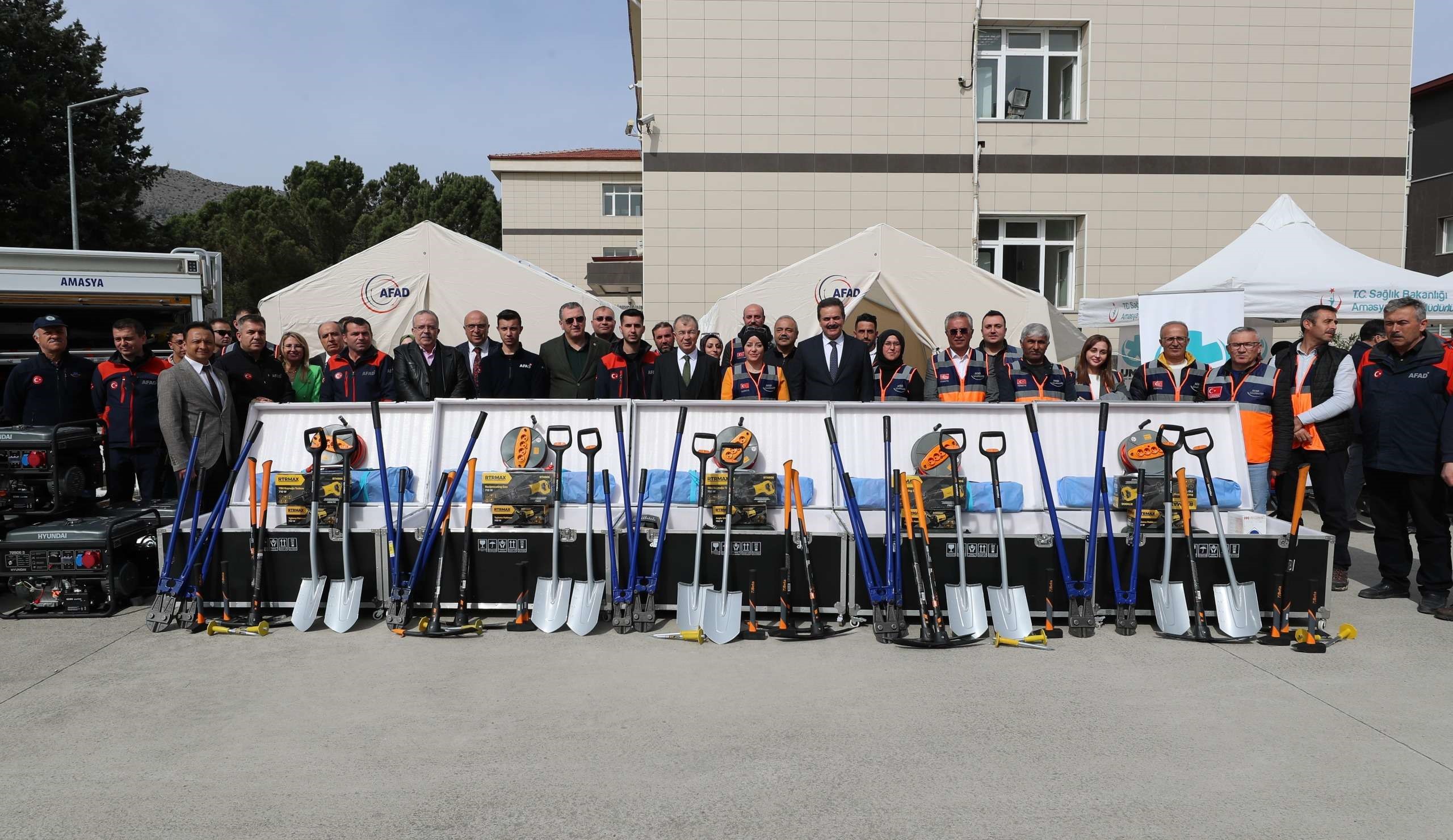 Amasya Üniversitesi İpekköy Yerleşkesinde düzenlenen çalıştayın açılışı sonrası Amasya İl Özel İdaresi’nin temin ettiği teknik ekipmanlar, AK Parti Amasya Milletvekilleri Haluk İpek ile Hasan Çilez ve Amasya Üniversitesi Rektörü Prof. Dr. Ahmet Hakkı Turabi’nin de katılımıyla AFAD görevlilerine teslim edildi. Sergilenen yeni ekipmanlar hakkında bilgiler de paylaşıldı.