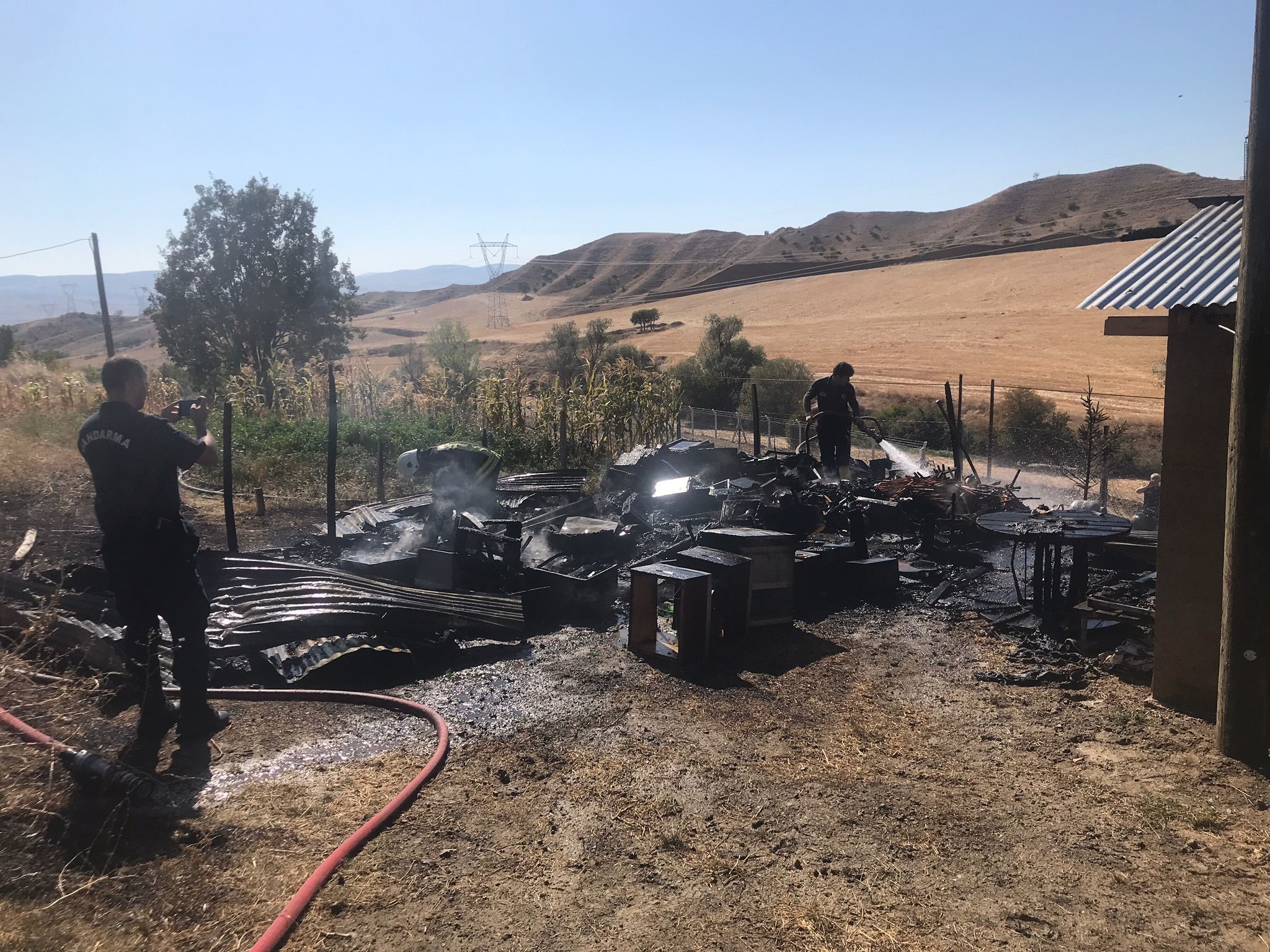 Jandarma ekipleri çıkan yangınla ilgili inceleme başlattı.