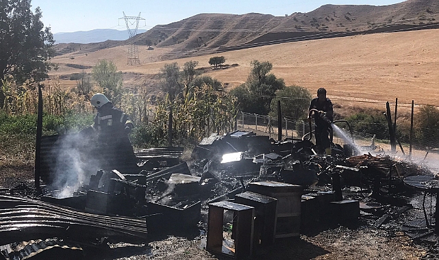 İlk belirlemeye göre 20 boş arı kovanı yanarken, sahibi de yaralanarak hastanelik oldu.Jandarma ekipleri çıkan yangınla ilgili inceleme başlattı.