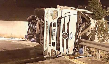 Amasya’da kavşakta kontrolden çıkarak devrilen tırın sürücüsü olay yerinde hayatını kaybetti.Edinilen bilgiye göre, Ş. B.'nin (29) kullandığı tır, Amasya çevre yolu otogar bağlantı kavşağında kontrolden çıktı. Bariyerlere çarparak devrilen tavuk eti yüklü tırın sürücüsü hayatını kaybetti.