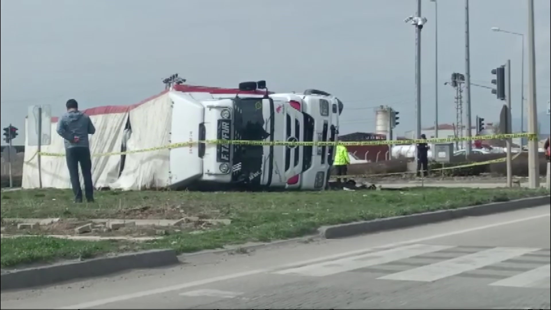 Edinilen bilgiye göre, Erhan Aktar yönetimindeki İran’a giden içecek yüklü tır, Suluova giriş kavşağına geldiğinde kırmızı ışık ihlali yaparak kavşakta ilerlerken yeşil ışıkta geçiş yapan sürücü Akif Emrah Taşdemir’in kullandığı yem yüklü tankere çarpmaktan ani manevrayla kurtuldu. Kontrolden çıkan tır yan yatarak yola devrildi.