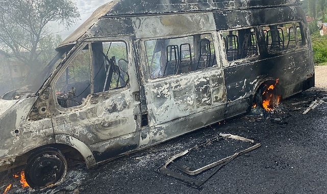 Tamamen yanan minibüs kullanılamaz hale geldi. Büyük tehlike atlatan çocuklar ise başka bir araçla programın yapıldığı Beldağ köyüne götürüldü.
