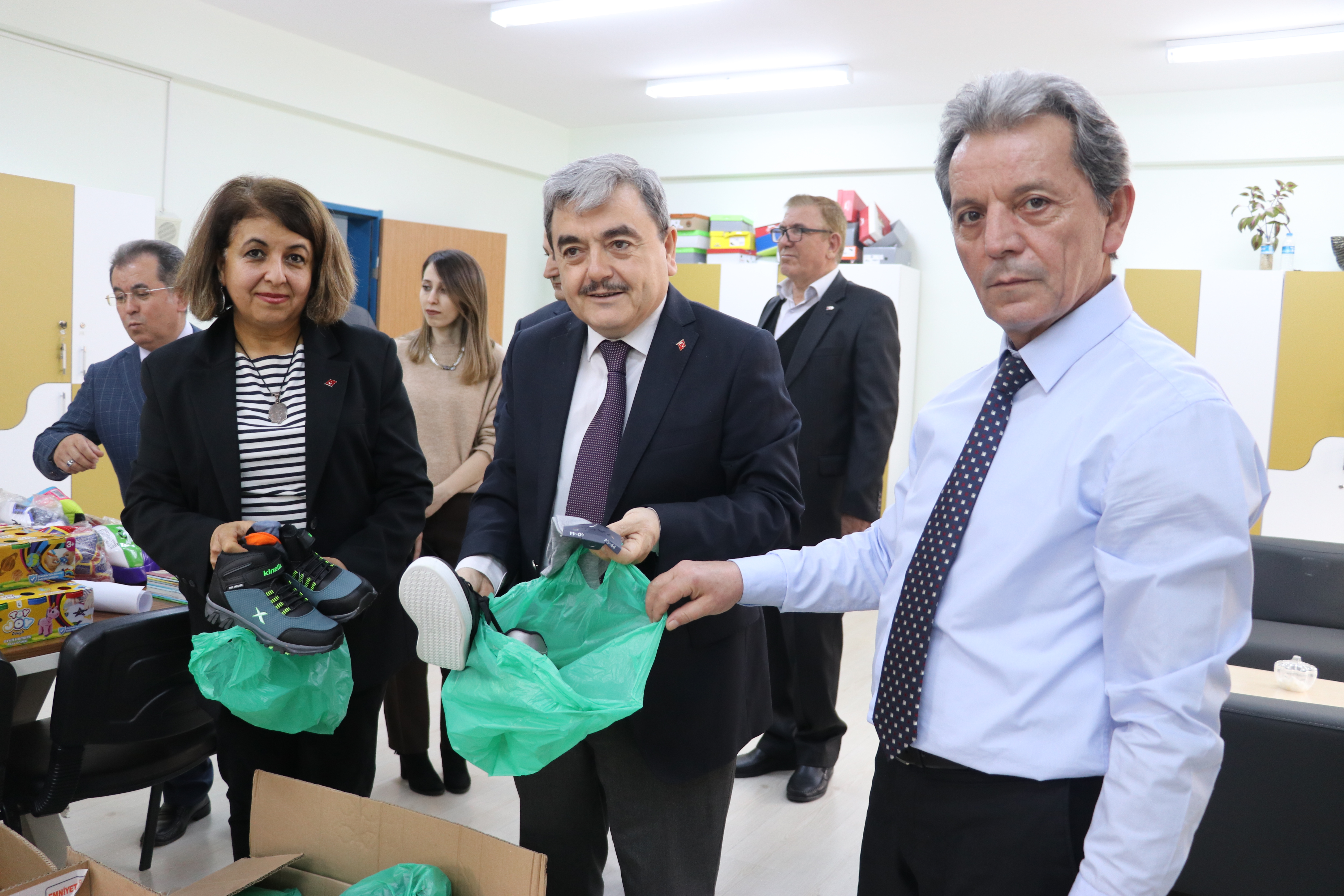 Amasya'daki okullardan deprem bölgesine yardımların sürdüğünü ifade eden Türkmen, "Arkadaşlarımız, oradaki yavrularımızın en çok neye ihtiyacı olduğunu öğrenerek, tüm velilerimizin de öğretmenlerimizin de katılımlarıyla hediye paketlerini hazırlamışlar. Malumunuz iklim de biraz sert, kış şartları devam ediyor. Ayakkabı, giysi ve kırtasiye malzemelerinden oluşan hediye paketleri hazırladılar. Biz yardım ve beraberlik duygusunu yaşayan öğrencilerimizle gurur duyuyoruz." diye konuştu.Okul öğretmenlerinden Müberra Şahin ise deprem bölgesindeki çocukları düşünerek veli, öğrenci ve öğretmenler olarak hep beraber bir kampanya düzenlediklerini söyledi.Şahin,"Kampanyamızda aslında 400 öğrencili bir okulda 100 öğrenciyi hedeflemiştik ama 200 öğrenciyi geçtik. Katılımdan çok memnunuz, biz zor günlerde birbirini destekleyen bir milletiz. Çok güzel oldu çocuklarımızın ayakları ısınırken biz de burada mutlu olacağız." ifadelerini kullandı.