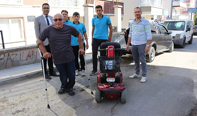 İl merkezindeki yaşayan Mustafa Aslan’ın günlük hayatta kullandığı engelli aracı arızalandı. Tamircilerle temasa geçmesine rağmen sorun çözülemeyince üyesi olduğu engelliler derneğinden destek istedi. Dernek yetkilileri de yaptıkları sosyal sorumluluk çalışmalarıyla bilinen Şehit Gültekin Tırpan Mesleki ve Teknik Anadolu Lisesi yöneticilerini aradı. Bunun üzerine okul müdürü Niyazi Şişik, 43 yaşındaki Aslan’ın evine gidip aracı inceledi. Okula götürülen araç, öğretmen ve öğrencilerin çabasıyla tekrar çalışır hale getirildi.