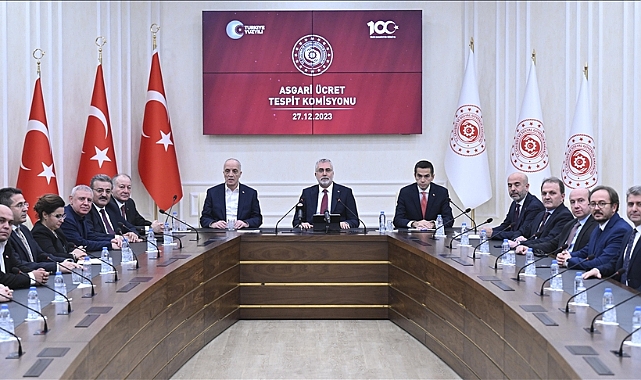 Bakan Işıkhan, Asgari Ücret Tespit Komisyonu'nun yeni yılda geçerli olacak asgari ücret rakamını belirleme çalışmalarında varılan sonucu, işçi ve işveren heyetlerinin katılımıyla Bakanlıkta düzenlediği toplantıyla açıkladı.Asgari ücretin esas manasıyla bir sosyal koruma ücreti olduğunu ifade eden Işıkhan, asgari ücretin çalışma hayatındaki ücret politikalarının en alt sınırını temsil ettiğini söyledi.Asgari Ücret Tespit Komisyonu'nun nihai hedefinin tüm tarafların görüş ve talepleri ile mevcut sosyo-ekonomik koşullarını gözeterek söz konusu sınırı belirlemek olduğunu vurgulayan Işıkhan, şöyle konuştu:"Bakanlık olarak bu süreçte asli görevimiz ise işçi ve işveren temsilcilerimiz arasında bir hakem rolü üstlenmektir. Ben öncelikle, bu süreci olumlu ve makul yaklaşımlarıyla ortak bir mutabakat zemininde yürüten tüm paydaşlara, TÜRK-İŞ Genel Başkanı Sayın Ergün Atalay'a ve TİSK Başkanı Sayın Özgür Burak Akkol'a ve komisyon üyelerine teşekkür ediyorum. Gerek işveren tarafımız gerekse işçi tarafımız gerçekten de hem çalışanlarımızın ve işverenlerimizin ihtiyaçlarını göz önünde bulundurarak hem de ülkemizin mevcut şartlarını son derece rasyonel bir düzlemde ele alarak en uygun noktada fikir birliğine varmışlardır. Bu süreçte çalışanlarımızın refahı noktasında büyük özveri gösteren TİSK Başkanımız Özgür Bey'e de özel teşekkür etmek istiyorum. Burada bir asgari ücret alt sınırı belirlemenin yanı sıra, sorunların çözümü noktasında toplumsal mutabakata katkı sağlayacak her türlü yapıcı yaklaşımın sergilenmesini de çalışma hayatımızın geleceği açısından çok çok önemli bulduğumu özellikle vurgulamak istiyorum."