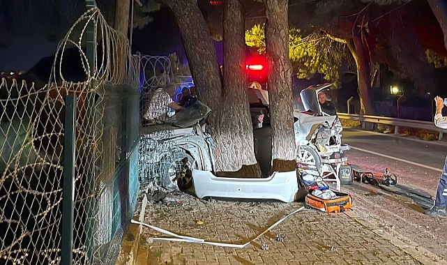 Olay ilçeye bağlı İskele Mahallesi Mithatpaşa Caddesi Ağaçlı Yol mevkiinde meydana geldi. Edinilen bilgiye göre, Urla istikametine seyir halinde olan 35 AS 5259 plakalı Ford marka aracın sürücüsü Emin Keskin (24), aynı istikamette seyir halinde olan belediye otobüsünü sollamak istedi. Bir anda sürücüsünün direksiyon hakimiyetini yitirdiği araç, önce otobüse çarptı ardından savrularak yol kenarındaki ağaca çarptı. Çarpmanın etkisiyle otomobil ikiye ayrılırken, kazayı görenlerin ihbarı üzerine bölgeye itfaiye, sağlık ve polis ekipleri sevk edildi. Polis ekipleri yolda güvenlik önlemlerini alırken, itfaiye ekipleri araçta sıkışan 2 kişiyi dışarı çıkarttı. Sağlık ekipleri tarafından yapılan kontrolde araçtan dışarı fırlayan Mehmet Ali Çiftçi (23) ve araçta sıkışan sürücü Emin Keskin'in hayatını kaybettiği belirlendi. Otomobilde bulunan diğer kişi Muhammet Muharrem P. ise, ağır yaralı olarak Dokuz Eylül Üniversitesi Tıp Fakültesi Hastanesine kaldırıldı.