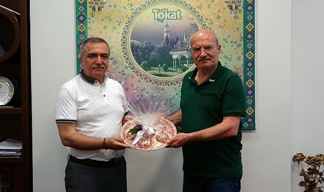 Başkan Çelik, ziyaretin anısına ATO Başkanı Baran'a Tokat'a özgü honç tepsi hediye etti.