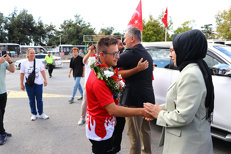 Kente gelen milli sporcu için eski otogarda Gençlik ve Spor İl Müdürlüğü yetkililerince karşılama töreni düzenlendi.Çiçeklerle karşılanan milli sporcuya arkadaşları ve yakınları sevgi gösterisinde bulundu.
