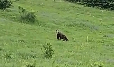 Tokat’ın Almus ilçesine bağlı Çamköy Yaylası’nda hayvanlarını otlatan Ebubekir Cebeci ayı ile karşılaştı. Metrelerce uzağındaki ayı cep telefonu kamerası ile görüntüleyen Cebeci, ayıyı ıslık çalarak çağırmaya çalıştı. Bir süre duraksayarak sesin geldiği yöne doğru bakan ayı bölgeden kaçarak uzaklaştı.