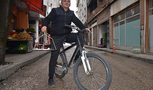 Eşiyle birlikte çay ocağını çalıştırdıkları o söyleyen Karadağ, “Bisiklet ile çay dağıtmaya eleman eksikliğinden dolayı başladım. Normalde yoğun bir cadde olduğu için işi biraz daha hızlandırmak için çayları bisiklet ile dağıtıyorum. Bu açıdan gün içerisinde olumlu tepkiler de alıyoruz. Yıllar önce tezgahtarlık yaptık şimdi de kendi işimizin sahibiyiz. Eleman varken de biz bisikletle dağıtım yapıyorduk ama şu an çalışanın ayağı kırıldı, ondan dolayı hatta bu da bizim büyük bir sorunumuz. Şimdi o da ortalama 3 ay boyunca evde bu açıdan biz de bisiklet ile servise devam” dedi.