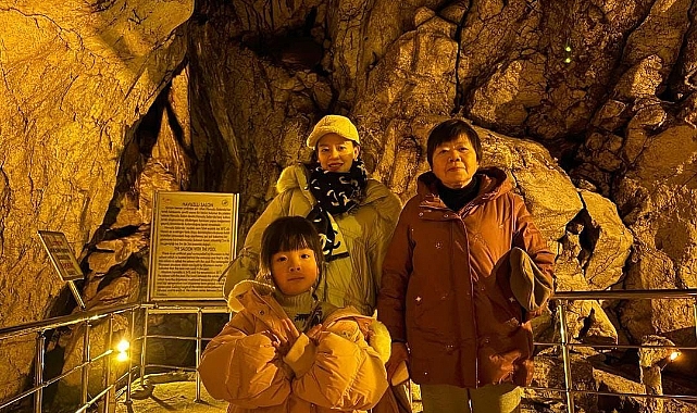 Çinli öğrenci, coğrafya dersinde gördüğü UNESCO Dünya Mirası Geçici Listesi'nde yer alan Tokat Ballıca Mağarası'nı ailesiyle ziyaret etti.