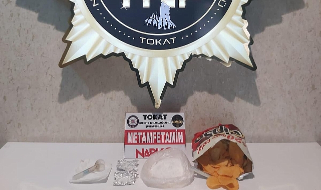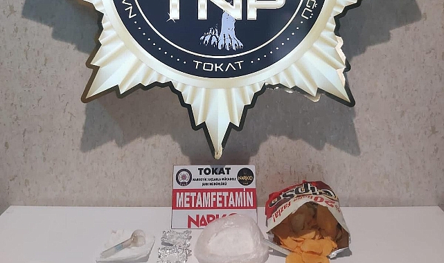 Tokat’ta Narkotik ekiplerince yapılan operasyonda cips paketine zulalanmış uyuşturucu ele geçirildi, 2 kişi tutuklandı.Tokat İl Emniyet Müdürlüğü Narkotik Suçlarla Mücadele Şube Müdürlüğü ekipleri, durdurdukları bir araçta arama yaptı. Aramada ağzı kapalı cips paketine zulalanmış vaziyette ve araçta bulunan 2 şahsın üzerinde toplam 3 parça halinde 99,99 gram Metamfetamin madde ele geçirildi.2 şüpheli ifadelerinin ardından çıkarıldığı mahkemece "uyuşturucu madde imal ve ticareti yapmak" suçundan tutuklanarak cezaevine gönderildi.
