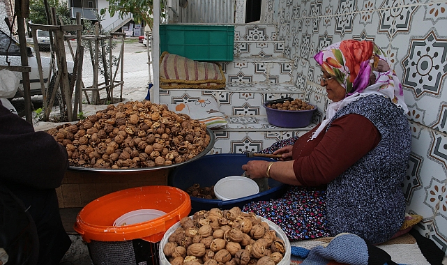 Coğrafi işaretli Niksar cevizini kadınlar kırarak kabuklarından ayırıyor
