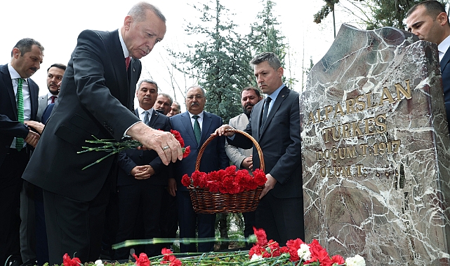Tuğrul Türkeş ile mezara karanfiller bırakan ve su döken Erdoğan, dua etti. Daha sonra Erdoğan, kendisini bekleyen vatandaşlarla sohbet edip fotoğraf çektirdi.