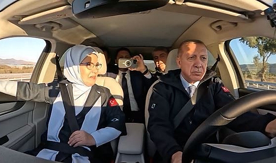 Erdoğan’ın paylaştığı görüntüde, kullandığı araçta bulunan Togg’un CEO'su Mehmet Gürcan Karakaş’ın araç hakkında bilgiler verdiği görüldü. Aracın sağ koltuğunda Cumhurbaşkanı Erdoğan’ın eşi Emine erdoğan otururken, çift yolculuğu Türk sanat müziği eserleriyle sürdürdü.Cumhurbaşkanı Erdoğan, Togg'un seri üretiminin yapılacağı togg Gemlik Kampüsü'nün açılış törenine kullandığı banttan indirilen ilk araç ile gelmişti.