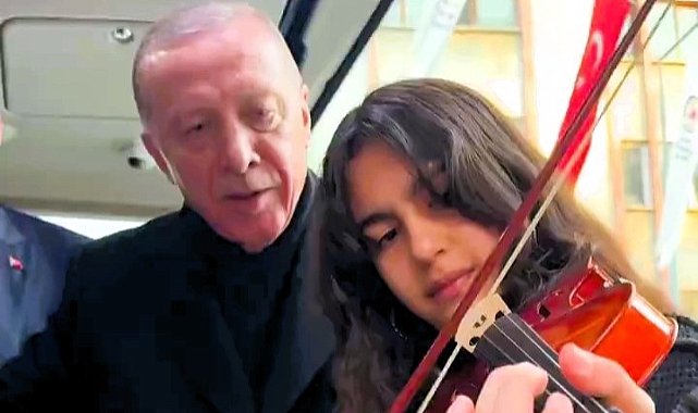 Cumhurbaşkanı Erdoğan, Denizli programı esnasında karşılaştığı bir kız öğrenciyi Cumhurbaşkanlığı otobüsüne davet etti. Öğrencinin kemanı ile çaldığı Çanakkale türküsüne sesiyle eşlik eden Erdoğan ile öğrenci arasına keyifli bir müzik sohbet gerçekleşti.