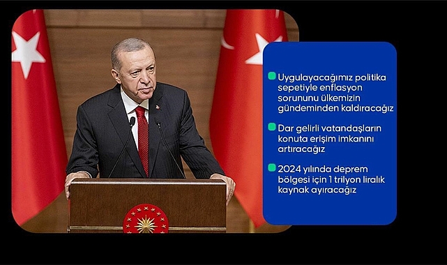 Cumhurbaşkanı Recep Tayyip Erdoğan; Cumhurbaşkanı Yardımcısı Cevdet Yılmaz, ilgili bakanlar ve bürokratların katılımıyla Cumhurbaşkanlığı Külliyesi'nde Orta Vadeli Program'ı (2024-2026) açıkladı.Cumhurbaşkanı Erdoğan, konuşmasının başında, dün Kırklareli ve İstanbul'da yaşanan sellerde hayatını kaybedenlere Allah'tan rahmet diledi.İçişleri Bakanlığı, AFAD, valilikler ve diğer kurumların su baskınlarından olumsuz etkilenen insanların sıkıntılarının giderilmesi için yoğun şekilde çalıştığını belirten Erdoğan, "Buradan her iki şehrimizde de özellikle ebediyete uğurladığımız vatandaşlarımıza rahmet dilerken, ailelerine sabırlar diliyor, milletimizin başı sağ olsun diyorum." ifadesini kullandı.Genel hatlarıyla paylaşacakları Orta Vadeli Program'ın ülke, millet ve ekonomi için hayırlara vesile olmasını dileyen Erdoğan, programın hazırlanmasında emeği geçenleri, Cumhurbaşkanı Yardımcısı Cevdet Yılmaz ile birlikte tüm bakanlıkları, kurumları ve sivil toplum kuruluşlarını tebrik etti.Cumhurbaşkanı Erdoğan, "Değerli fikirleriyle, tenkit ve tespitleriyle programın içeriğine katkı sunan iş dünyamızın temsilcilerine, odalarımıza, sendikalarımıza, meslek örgütlerine, sivil toplum kuruluşlarımıza ve diğer tüm paydaşlara teşekkür ediyorum." dedi.Erdoğan, Cumhurbaşkanlığı Hükümet Sistemi'yle Türkiye'nin, başta yönetimde istikrar olmak üzere, nasıl büyük kazanımlar elde ettiğinin her gün çok daha iyi görüldüğünü ve idrak edildiğini belirtti.Katılım düzeyi ve rekabet seviyesi itibarıyla sadece Türk siyasi tarihine değil, dünya siyaset literatürüne de geçen 14 ve 28 Mayıs seçimlerinin tam bir demokratik olgunluk içinde tamamlandığını ifade eden Erdoğan, sandıkların açılmasıyla tüm belirsizliklerin ortadan kalktığını ve Türkiye'yi kimin yöneteceğinin belli olduğunu kaydetti.