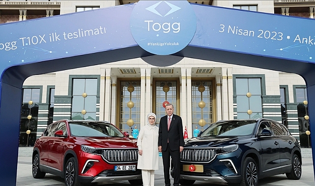 Türkiye'nin yerli ve milli otomobili Togg'un ilk siparişini veren Cumhurbaşkanı Recep Tayyip Erdoğan ve Emine Erdoğan'a araç teslim edildi.