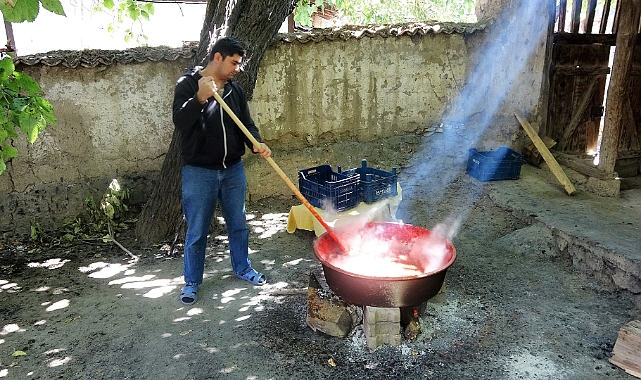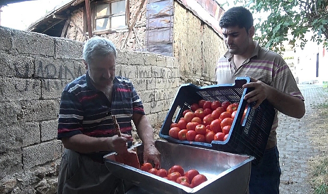 Çiftçiden, pazardan alınan kilolarca domatesin suyu, kısa sürede seyyar domates çekme makinesi ile çıkartılıyor. Bakır kazanlara konulan domates suyu koyulaşıncaya kadar bakır leğenlerde odun ateşinde pişiriliyor. Soğuduktan sonra konserve şişelerine doldurularak dolaplardaki yerini alıyor. Salça yapan annesine yardım eden Metin Şenyüksel, "Geçen yıllara göre domates de biber de pahalı. Salçalık domates pahalı. Yine de insanları domates fiyatları pahalı da olsa kendi yaptığı salçayı tercih ediyor. Çarşıda satılan salçadan bereketli oluyor. Organik salça daha ekonomik oluyor" diye konuştu