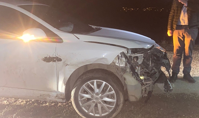 Domuz sürüsüne çarptı, maddi hasar oluştu