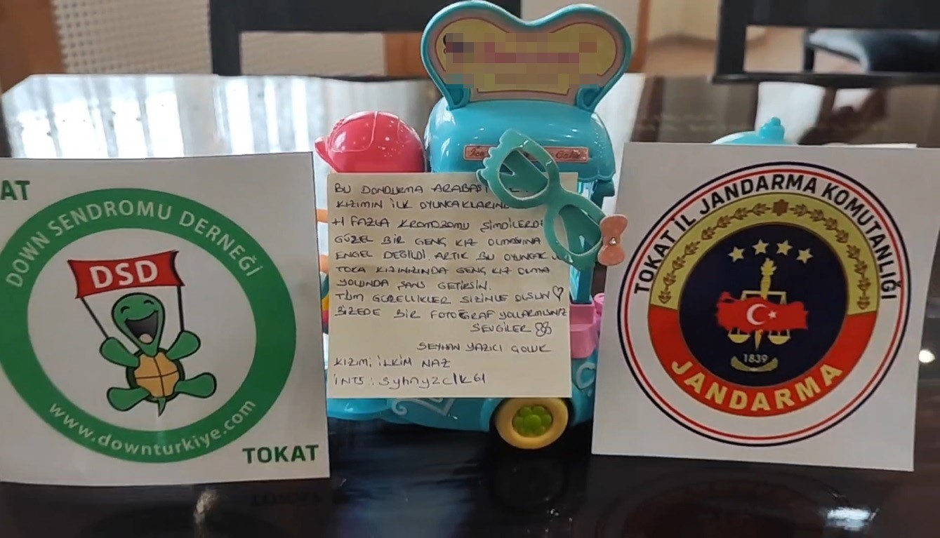 Tokat İl Jandarma Komutanlığı ve Tokat Down Sendromlular Derneği işbirliğinde 21 Mart Down Sendromlular Günü dolayısıyla etkinlik düzenlendi. Down sendromlu çocuklar düzenlenen etkinlikte gönüllerince eğlendi. Programa katılan çocuklar oyuncaklarını paketleyerek deprem bölgesindeki çocuklara gönderdi. Tokat İl Jandarma Komutanlığı Asayiş Şube Müdürü Yarbay Ali İhsan Kurtalan da down sendromlu 6 yaşındaki kızı Ece ile oyuncak paketledi. Oyuncak kolilerinin üzerine yazılan bir not ise görenleri duygulandırdı. Seyhan Yazıcı Çoluk, kızı İlkim Naz adına yazdığı notta “Bu dondurma arabası kızımın ilk oyuncaklarından. Artı 1 fazla kromozomu şimdilerde güzel bir genç kız olmasına engel değildi. Artık bu oyuncak ve toka kızınızın da genç kız olma yolunda şans getirsin. Tüm güzellikler sizinle olsun” şeklindeki ifadelere yer verdi.