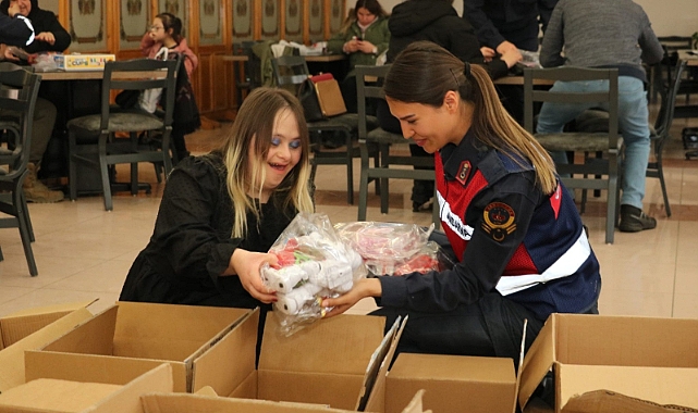 Jandarma personelinin ve down sendromlu çocukların ailelerinin katkılarıyla toplanan yaklaşık 400 oyuncak, 120 plastik top ile 80 ayakkabı deprem bölgesindeki çocuklara gönderildi.