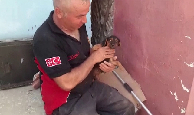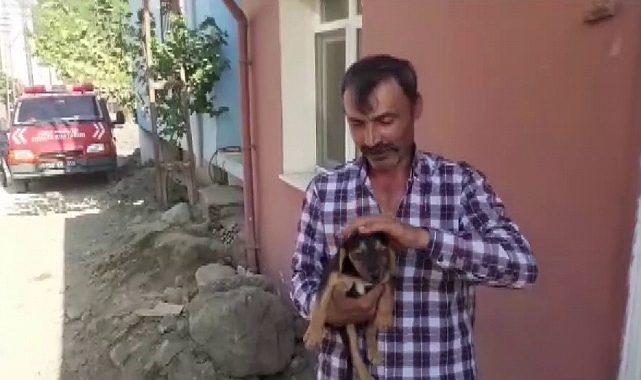 Tokat’ta iki evin arasında bulunan boşluğa düşen yavru köpek itfaiye ekiplerinin 3 saatlik çalışması sonucu kurtarıldı.