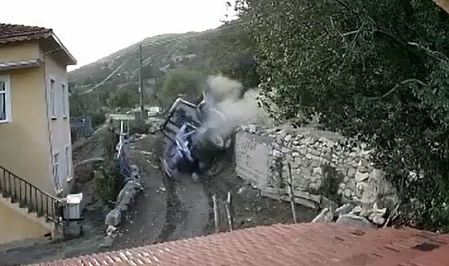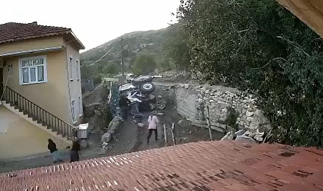 Edinilen bilgiye göre kaza; Tokat'ın Turhal ilçesine bağlı Sarıkaya köyünde meydana geldi. M.O (25) idaresindeki traktör sürücüsünün bir anlık dikkatsizliği sonucu yol kenarındaki duvara çarptı.Çarpmanın etkisi ile duvardan aşağı devrilen traktör yan yattı. Kazayı fark eden vatandaşların yardımı ile sürücü traktör kabininden çıkartıldı. Genç sürücü kazayı hafif yaralı olarak atlatırken o anlar bir evin güvenlik kamerasına yansıdı.Görüntülerde traktörün duvara çarparak devrilmesi, köylülerin panikle sürücüye yardım için koşması yer aldı.
