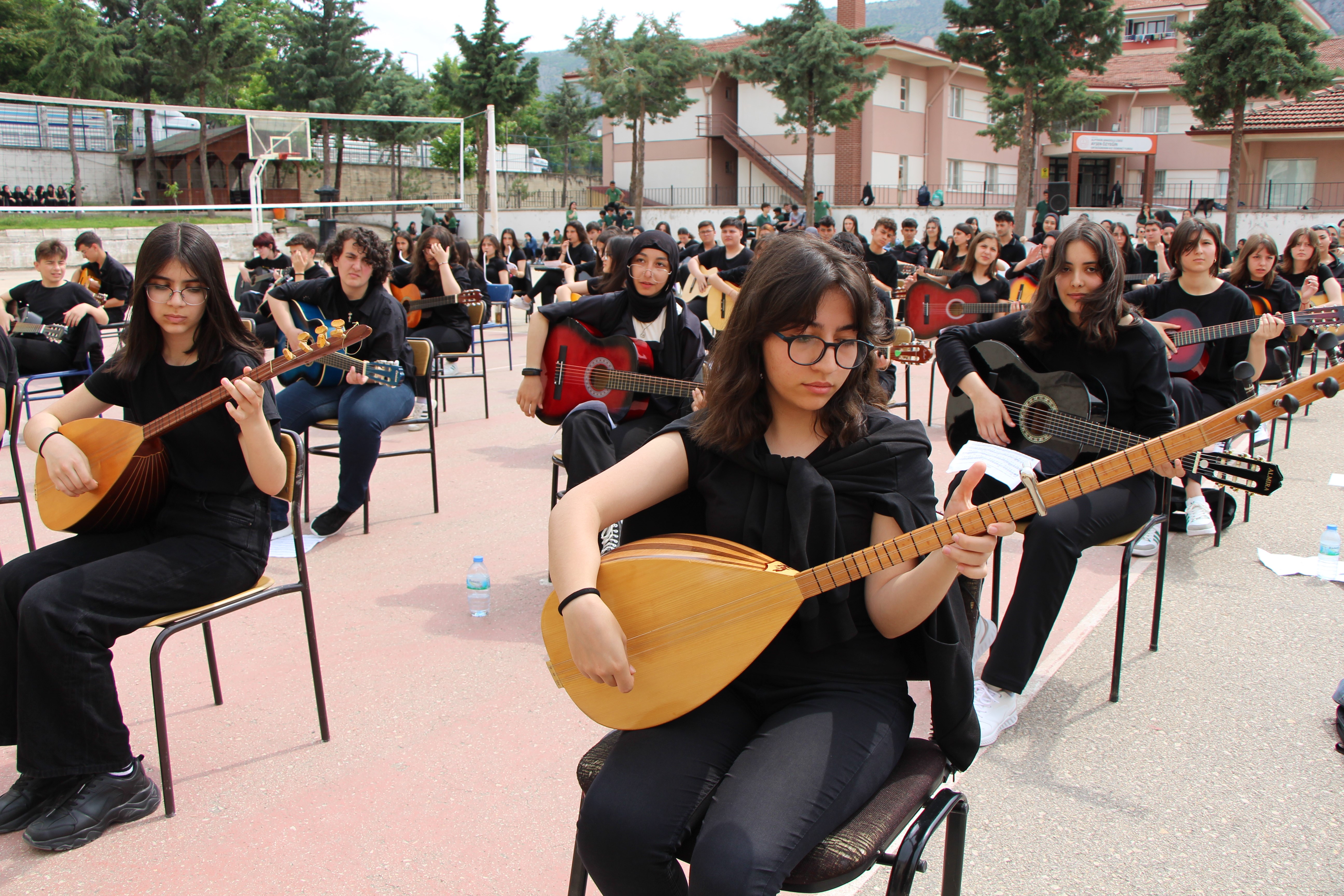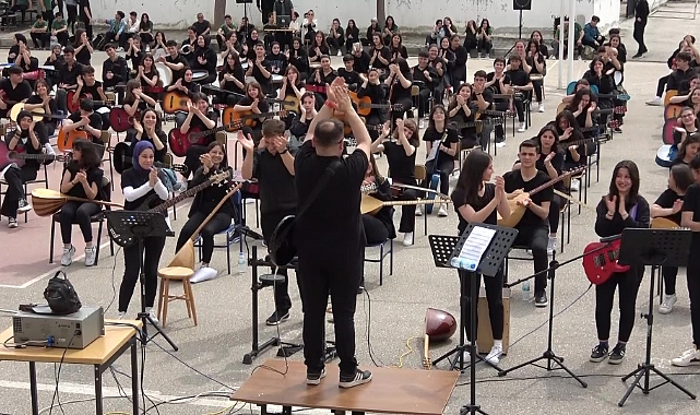 Müzik alanında ses getiren projelere imza atan müzik öğretmeni Seyit Alper Kartal’dan eğitim alan öğrenciler okul bahçesinde bağlama, gitar, def, elektro gitar ve keman gibi enstrümanları birlikte uyum içinde çalıp türkü ve şarkıları seslendirdi. Her öğrencinin bir enstrüman öğrenmesi için çaba harcayan Kartal, 6 Şubat’ta yaşanan deprem felaketini unutturmamak amacıyla ilk eser olarak Kahramanmaraş yöresine ait "Çeşmi Siyahım" türküsünü seslendirdiklerini söyledi.