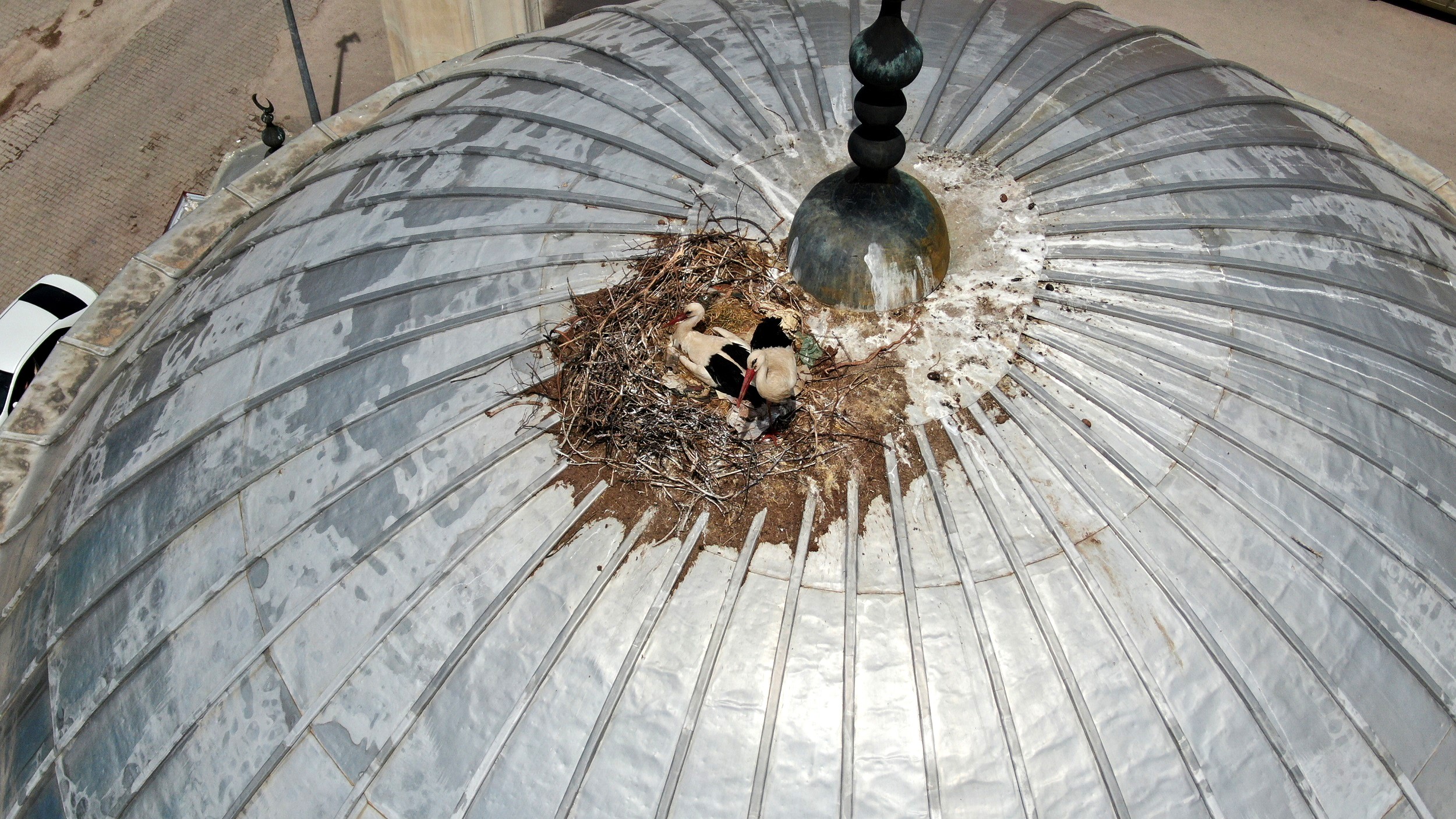 Sivas'ın Gemerek ilçesi Yeniçubuk Merkez Caminin kubbesine yuva yapan leylek ailesi dikkat çekiyor. Her yıl havaların ısınmasıyla göç yolculuğuna başlayan leylekler yavrularına yuva olarak caminin kubbesini seçti. Yeniçubuk İlçe merkezinde bulunan merkez caminin kubbesine yuva yapan leylek Çifti caminin ‘Leylekli Cami' olarak anılmasına neden oldu. Yaklaşık 25 yıldır aynı yere gelen farklı leylekler yavrularıyla birlikte drone ile havadan görüntülendi.