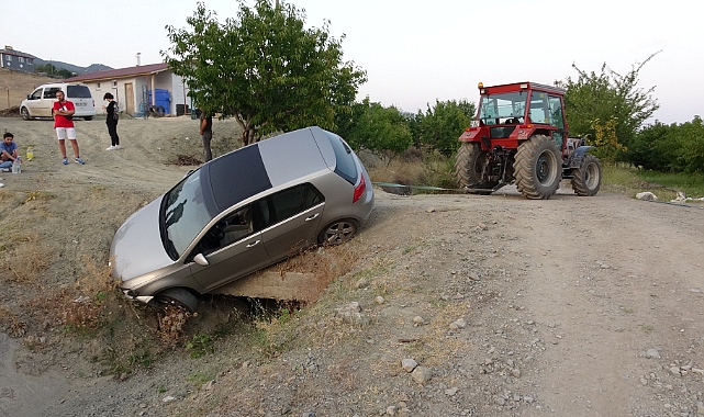 Tokat’ta güneş gözünü alınca virajı alamayan sürücü otomobiliyle sulama kanalında asılı kaldı.Kazayı yara almadan atlatan araçtaki 2 kişinin yardımına köylüler yetişti.