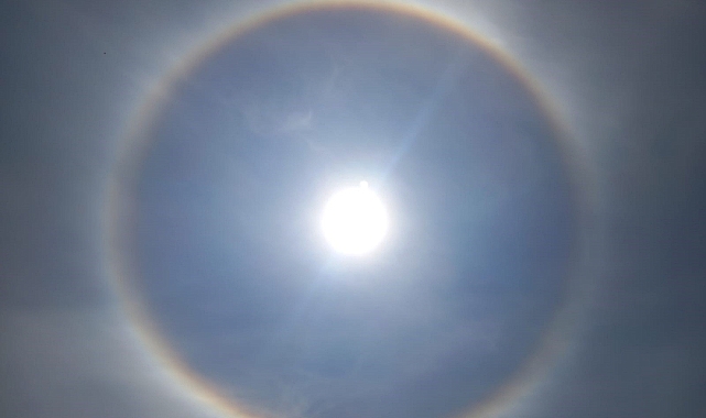 Etkileyici bir ışık halkası olan halo, Develi’de güneşin etrafında belirdi. Bu doğa olayı, atmosferin yüksek irtifalarında bulunan ince buz kristallerinin güneş ışığını kırıp yansıtması sonucu meydana geliyor. Özellikle 22 derece halo olarak adlandırılan bu fenomen, buz kristallerinin altıgen yapıları sayesinde ışığın belirli açılardan kırılmasıyla oluşuyor. Develi’nin soğuk iklimi ve temiz havası, bu tür optik olayların ortaya çıkması için ideal şartları oluştururken, bu eşsiz manzara, sadece doğaseverler için görsel bir şölen sunmakla kalmayıp; aynı zamanda meteorolojik gözlemler ve atmosfer araştırmaları için de önemli ipuçları taşıyor. Halo; adeta doğanın sunduğu ziyafet izlenimi veriyor.