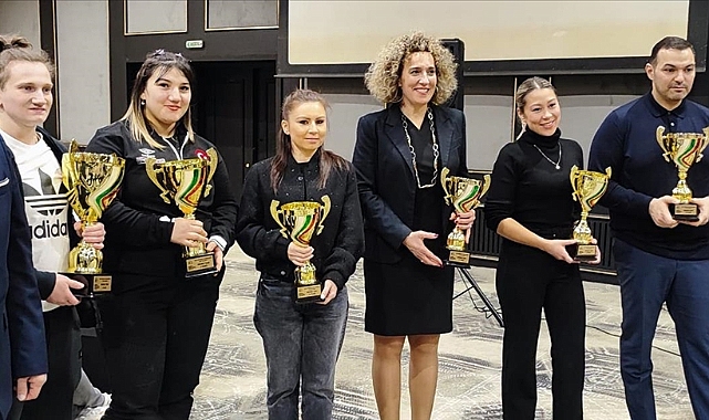 Bulgaristan'da düzenlenen Avrupa Halter Şampiyonası'nda takım halinde dereceye giren ülkeler, düzenlenen törenle kupalarını aldı.Başkent Sofya'da gerçekleştirilen şampiyonanın sona ermesinin ardından bu gece sporcuların kaldığı otelde takım halinde dereceye giren ülkeler için kupa töreni düzenlendi.Törende ilk altıya giren ülkelere kupaları takdim edildi.Şampiyonada Türkiye, kadınlarda takım halinde ikinci oldu.