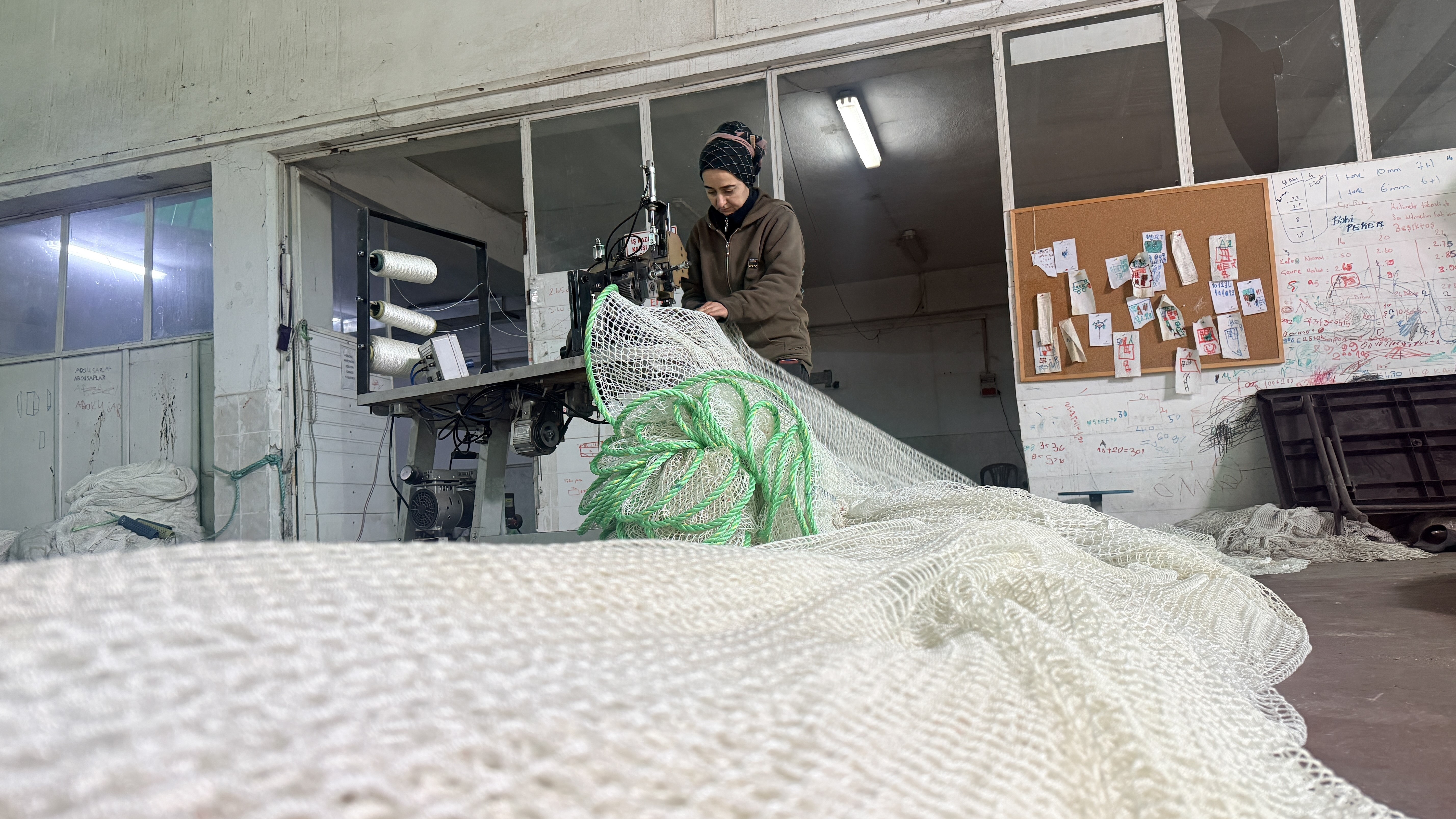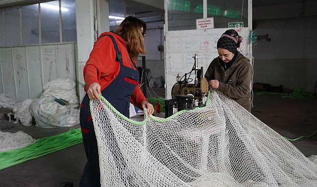 Tokat'ta kurduğu atölyede balık üretim kafesleri için ağ hazırlayan girişimci kadın, barajlarda yetiştirilen somonların Karadeniz üzerinden dünya sofralarına ulaşmasına katkı sağlıyor.