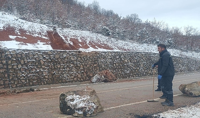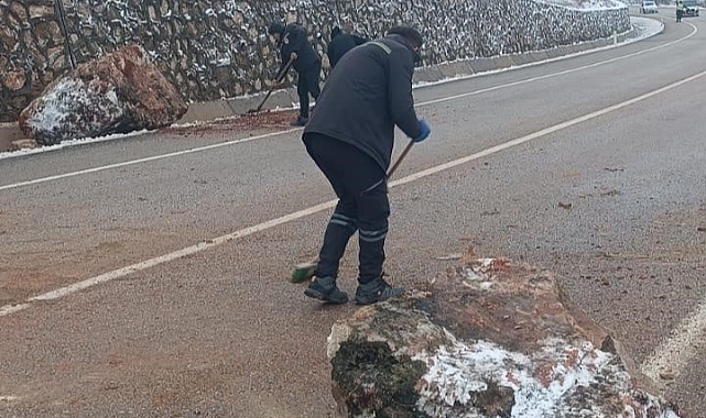 Karayoluna düşen kaya parçaları trafiği aksattı