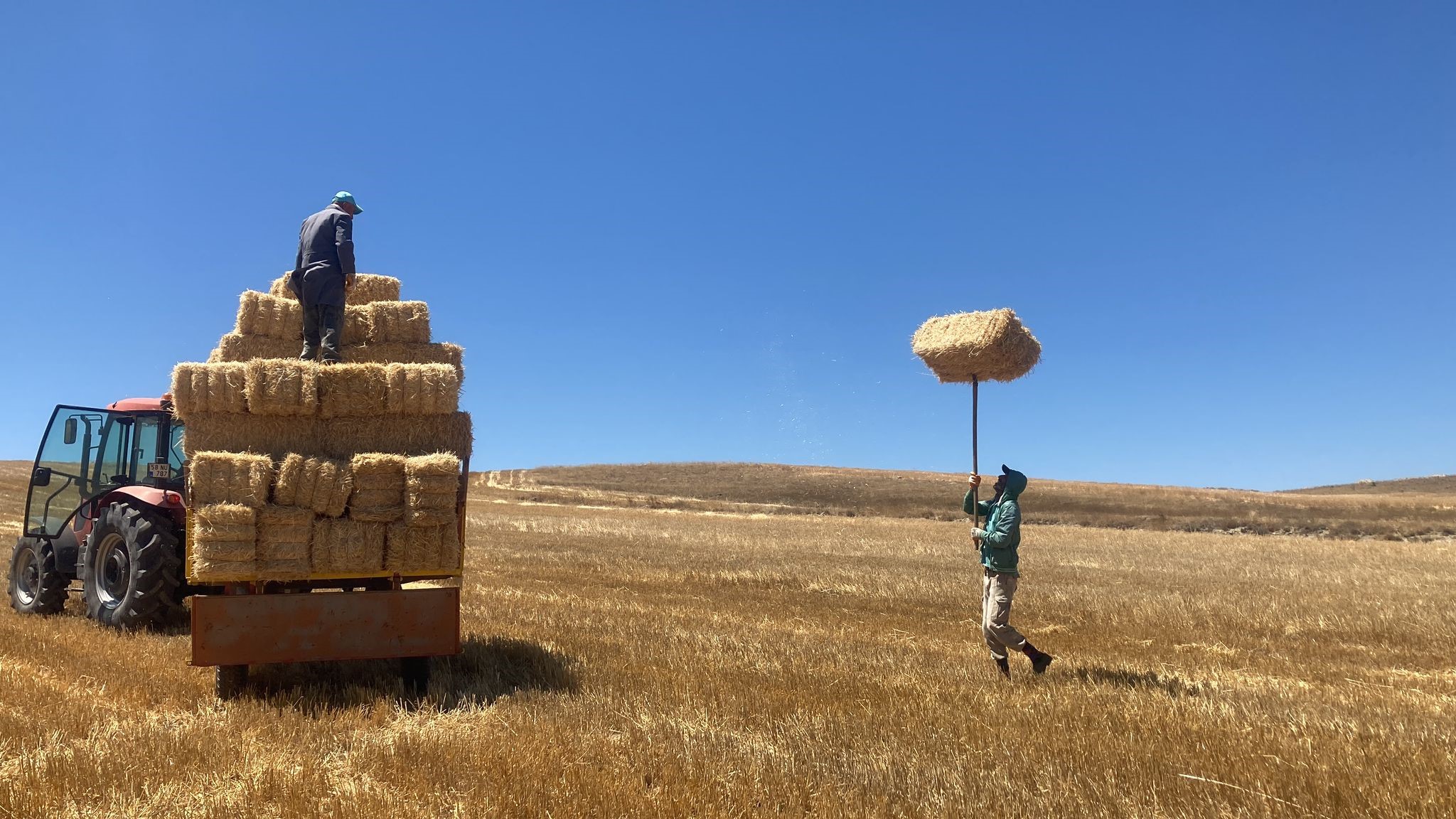 Sıcak havanın kendilerini zorladığını belirten Kaplan, “Hasat zamanı başladı. Biçerdöverler tarlalara girdi. Hasadımızı yaptık, şimdi de saman balyalarımızı yapıyoruz. Hayvanlarımızın samanını temin ediyoruz. Dolu vurduğu için bu sene zarardayız. Hasat düşük. Günlük 300 balya çekiyoruz. Kışa hazırlık yapıyoruz. Birkaç gün böyle sürecek. Hayvanlarımızın yemeğini temin edecek. Hava sıcaklığı nedeniyle elbette zor oluyor. Çiftçinin işi her zaman zordur. Fakat yapacak bir şey yok mecburuz” dedi.