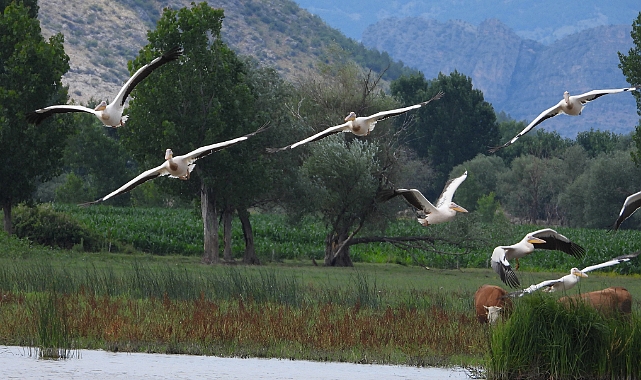 Tokat'ın Pazar ilçesinde kuşların göç yolunda bulunan Kaz Gölü'ne pelikanlar akın etti.