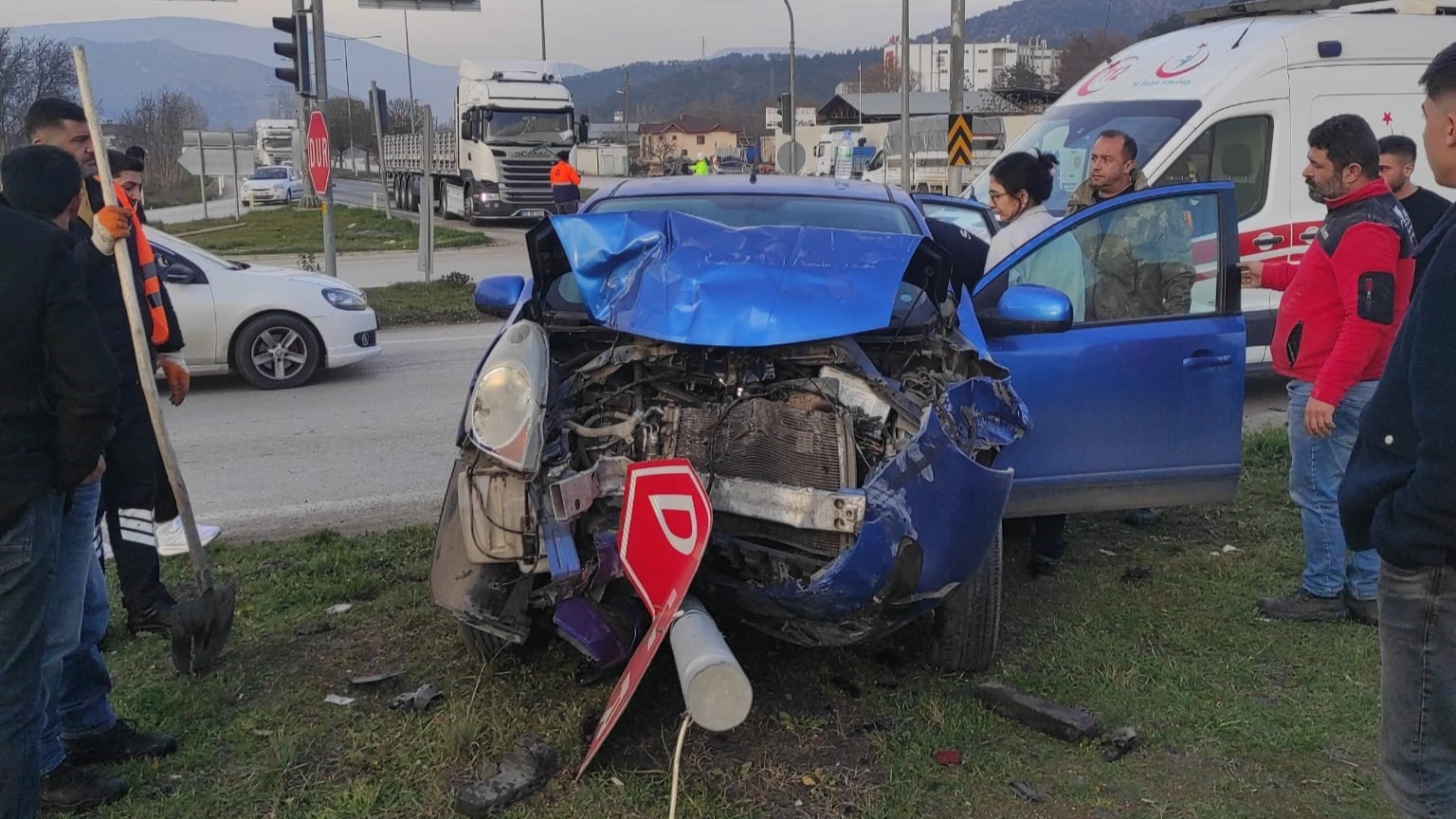 Edinilen bilgiye göre, Amasya merkez Mecitözü kavşağında kırmızı ışıkta bekleyen A.Ç.'nin direksiyonunda bulunduğu otomobile, arkasından gelen Ş.S.'nin (43) kullandığı otomobil çarptı. Savrulan otomobil sinyalizasyon direğine çarparak durabildi.