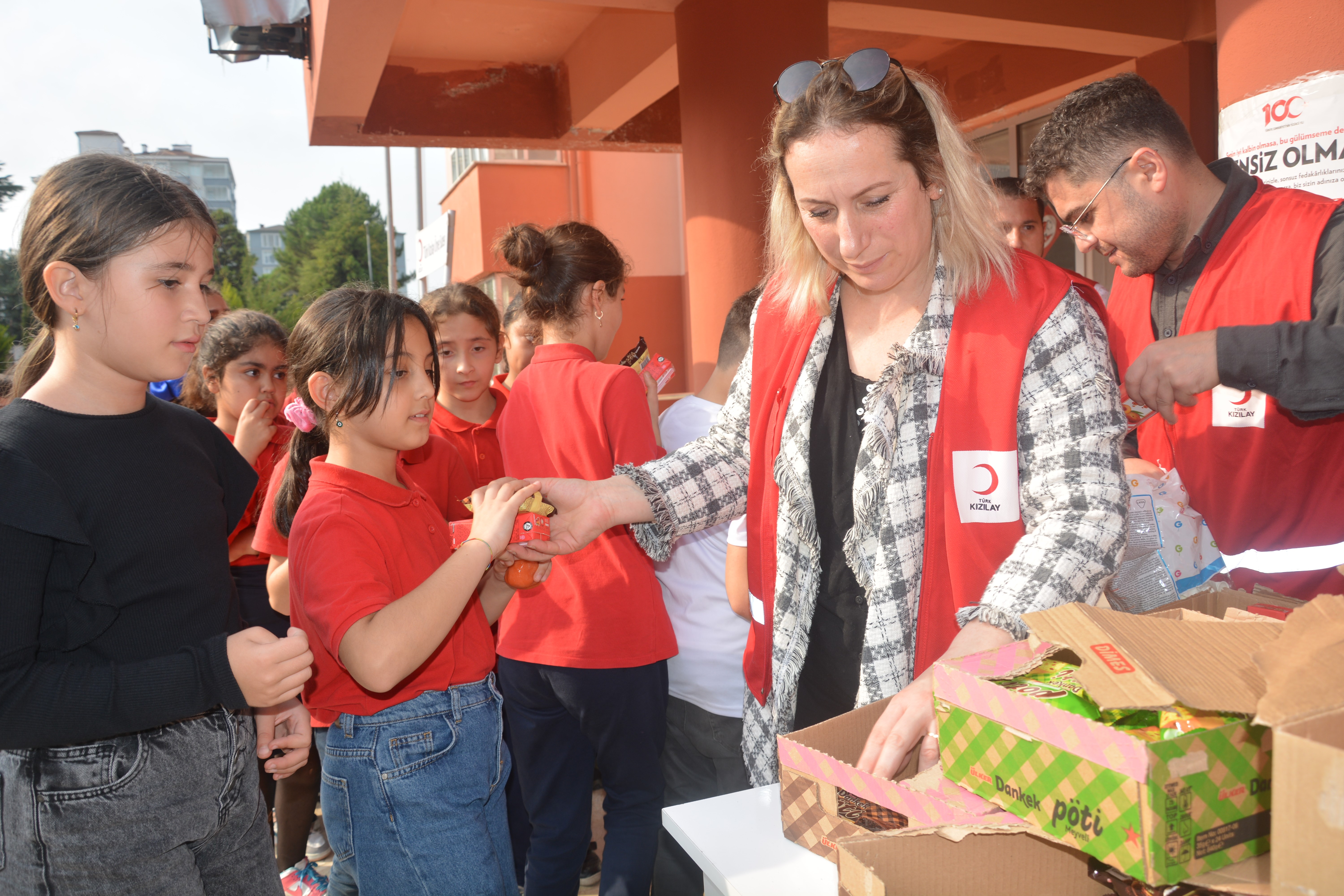 Ünye Anafarta İlkokulu Sınıf Öğretmeni Erdoğan Kapıcıoğlu, Türk Kızılay'ın önemine değinerek, "Türk Kızılay, başka ülkelerde meydana gelen afetlere de yardım elini uzatır.