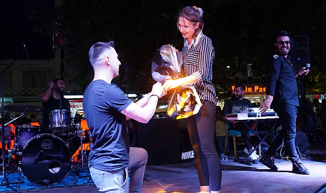 Tokat’ın Erbaa ilçesinde düzenlenen gençlik konserinde sahneye çıkan genç kız arkadaşına evlilik teklifi yaptı.