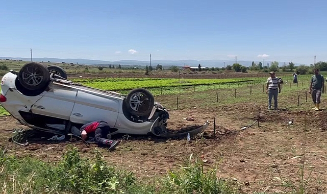 Erbaa istikametinden Niksar istikametine seyir halinde olan A. G. (59) idaresindeki otomobil yol kenarında park halinde bulunan minibüse çarpması sonucu takla atarak tarlaya uçtu.