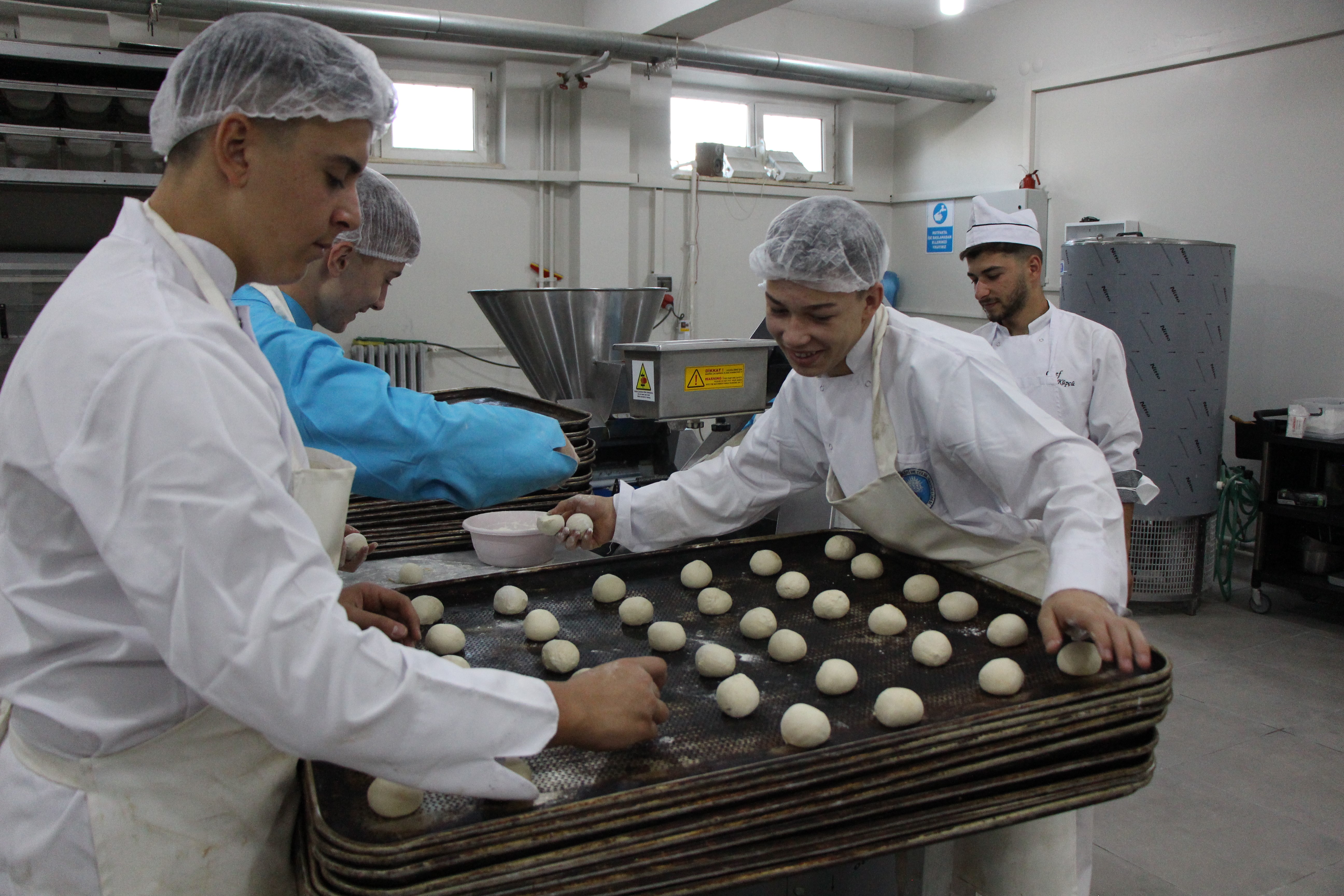 Amasya Borsa İstanbul Mesleki ve Teknik Anadolu Lisesi’nin mutfağında görev yapan görevliler ile öğrenciler çeşitli yemekler ve ekmek yapımı sonrası ürün yelpazesine tahin helvası da ekledi. Tahin, şeker karışımıyla oluşan geleneksel Türk tatlısı olan helva, öğrencilerin ellerinde hazırlanıp makinelerden geçerek şekil aldı.