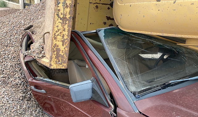 Sivas’ta kayan mıcır yüklü kamyon otomobilin üzerine devrildi.