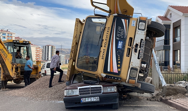 Edinilen bilgiye göre, olay, Eğriköprü Mahallesinde meydana geldi. Sivas Belediyesi’ne ait mıcır yüklü BMC marka 58 FB 771 plakalı kamyon kayarak tonlarca mıcırla birlikte yol üzerinde bulunan 58 FS765 plakalı Mercedes marka otomobilin üzerine devrildi. Olayda otomobil hurdaya döndü. Devrilen kamyon vinç yardımı ile güçlükle kaldırıldı.Olayda yaralanan olmadı.
